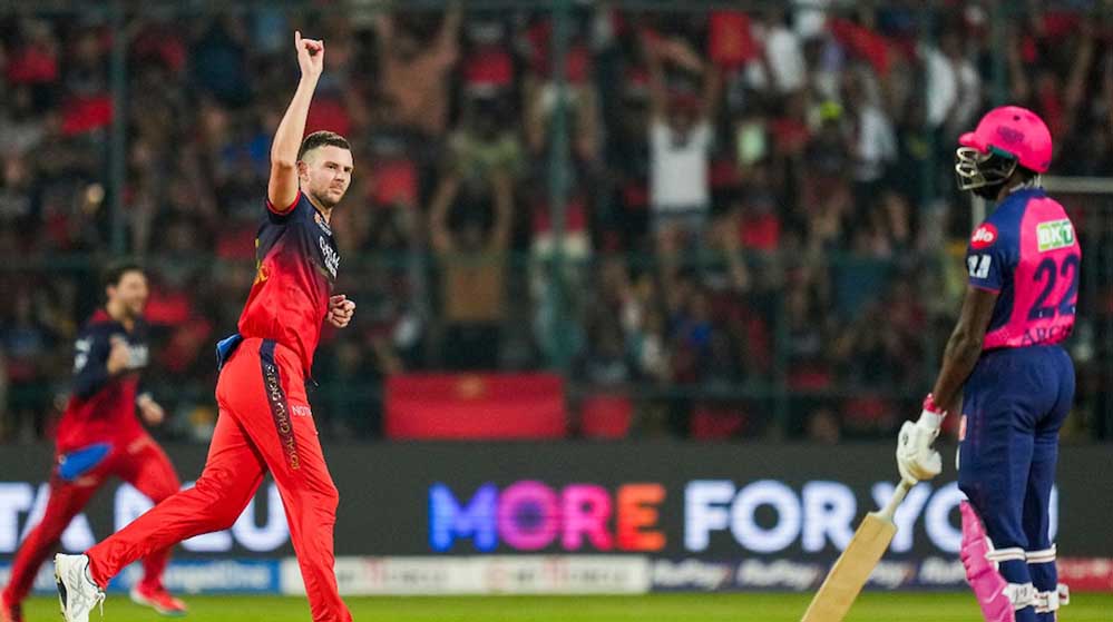 तीसरी गेंद पर जुरेल (34 बॉल 47 रन) जोश की गेंद पर विकेटकीपर जितेश शर्मा को कैच दे बैठे. जुरेल के आउट होने के बाद राजस्थान को छठा झटका लगा. इसके बाद जोफ्रा आर्चर आए जो पहली ही गेंद पर RCB के कप्तान रजत पाटीदार को कैच दे बैठे. इस तरह जोश ने 4 गेंदों में खेला कर दिया. 19वें ओवर की पांचवीं और छठी गेंद वानिदु हसरंगा ने खेली, ये दोनों गेंद खाली गईं.