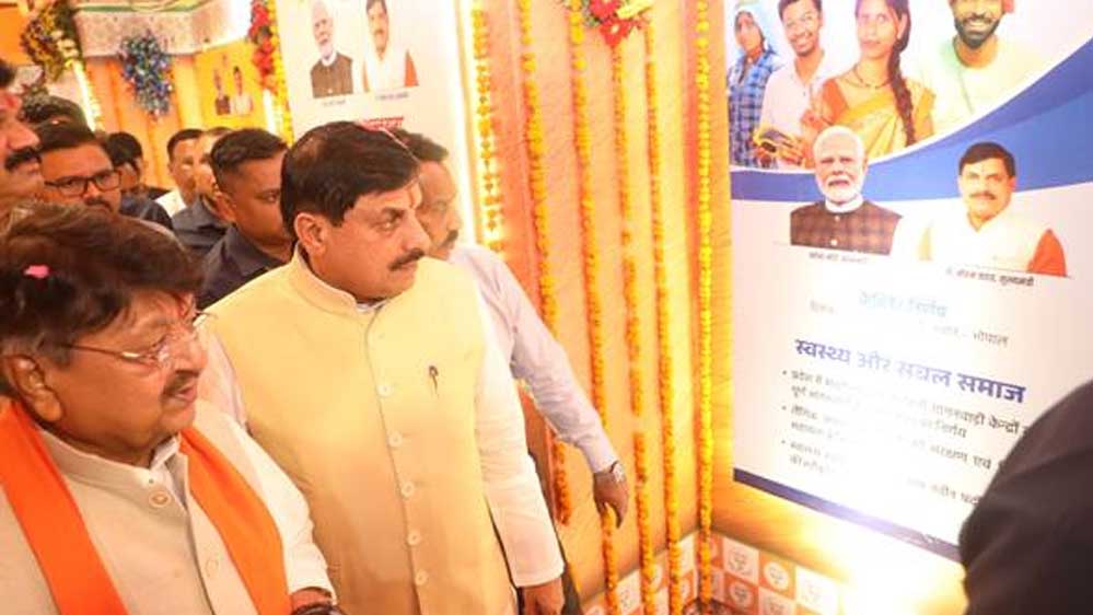 मुख्यमंत्री डॉ. मोहन यादव ने इन्दौर के राजवाड़ा स्थित देवी अहिल्या उद्यान के पास सोमवार देर शाम लोकमाता देवी अहिल्या बाई होल्कर के जीवन दर्शन से प्रेरित राज्य शासन की योजना और कार्यों पर आधारित विकास यात्रा आधारित प्रदर्शनी का शुभारंभ किया। मुख्यमंत्री ने प्रदर्शनी का अवलोकन कर सराहना की। नगरीय विकास एवं आवास मंत्री कैलाश विजयवर्गीय, जल संसाधन मंत्री तुलसीराम सिलावट, खाद्य, नागरिक आपूर्ति एवं उपभोक्ता संरक्षण मंत्री गोविंद सिंह राजपूत, सांसद शंकर लालवानी, महापौर पुष्यमित्र भार्गव, विधायक रमेश मेंदोला, श्रीमती मालिनी गौड़, विधायक गोलू शुक्ला, सुमित मिश्रा, श्रवण चावड़ा सहित अन्य जनप्रतिनिधि मौजूद थे।