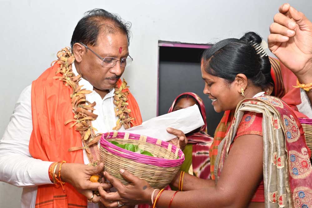 इस अवसर पर मुख्यमंत्री को सरई पत्तों से बने दोने-पत्तल में तेंदू, चार और लीची जैसे स्थानीय और मौसमी फल परोसे गए। आम से बने पारंपरिक पेय आम पना का भी उन्होंने स्वाद लिया। लहंगू की पत्नी दरसी ने मुख्यमंत्री को अपने हाथों से तैयार की गई छिंद की चटाई, रागी, कुटकी और कटहल का फल उपहार स्वरूप भेंट किया, जिसे मुख्यमंत्री ने पूरे सम्मान के साथ स्वीकार किया। इसी कड़ी में मुख्यमंत्री ने पहाड़ी कोरवा श्रीमती भूखना के पीएम जनमन आवास योजनान्तर्गत बने आवास का भी अवलोकन किया।