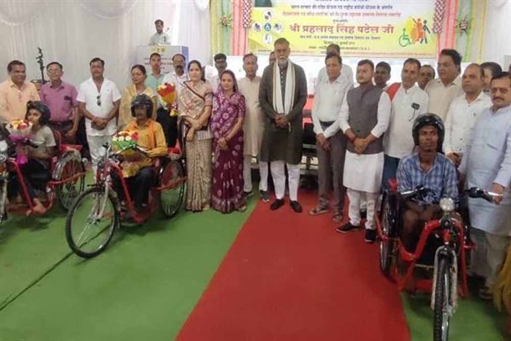 पंचायत एवं ग्रामीण विकास तथा श्रम मंत्री श्री प्रहलाद सिंह पटेल ने शुक्रवार को बालाघाट के सांदीपनी विद्यालय प्रांगण में आयोजित कार्यक्रम में 240 दिव्यांगजनों को ट्राई साइकिल एवं सहायक उपकरणों का वितरण किया। इस अवसर पर जिला पंचायत उपाध्यक्ष श्री राजा लिल्हारे सहित अन्य जनप्रतिनिधि एवं आधिकारी उपस्थित थे।