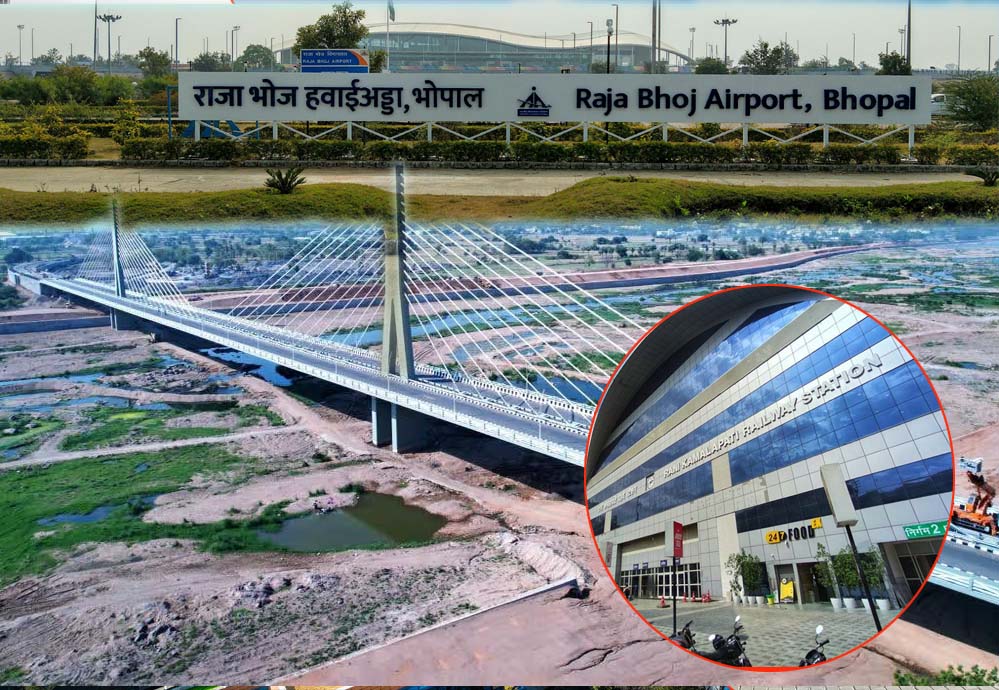 रानी कमलापति स्टेशन से एयरपोर्ट तक 17 किमी केबल ब्रिज: इस मेगा प्रोजेक्ट के तहत राजधानी को एयरपोर्ट से जोडऩे के लिए 17 किलोमीटर लंबा केबल ब्रिज बनाया जाएगा, जिसमें 2 किलोमीटर का हिस्सा बड़े तालाब क्षेत्र से होकर एलीवेटेड ब्रिज के रूप में गुजरेगा। मौजूदा समय में एयरपोर्ट तक पहुंचने में लगने वाली देरी और ट्रैफिक जाम की समस्या को देखते हुए यह ब्रिज शहर की जरूरत बन गया है। नितिन गडकरी ने इस प्रस्ताव को ‘भोपाल के लिए व्यावहारिक और समय की मांग’ बताते हुए स्वीकृति दी।